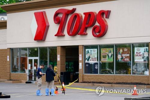 Investigators work the scene of a shooting at a supermarket, in Buffalo, N.Y., Monday, May 16, 2022. (AP Photo/Matt Rourke)