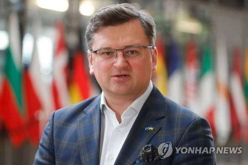 epa09950932 Ukraine's Foreign Minister Dmytro Kuleba talks to the press ahead of the second part of a meeting of EU foreign ministers at the European Council, in Brussels, Belgium, 16 May 2022. European Union foreign ministers are discussing current affairs and exchanging views on the Russian aggression against Ukraine and the Global Gateway. EPA/STEPHANIE LECOCQ