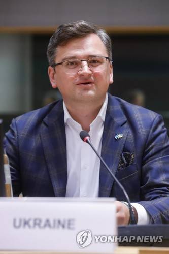 Ukraine's foreign minister Dmytro Kuleba participates at a meeting of EU foreign ministers at the European Council building in Brussels, Monday, May 16, 2022. European Union foreign ministers on Monday will discuss current affairs and have an exchange of views on the Russian aggression against Ukraine and the Global Gateway. (Stephanie Lecocq/Pool Photo via AP)