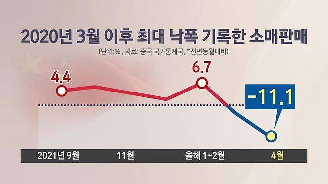 어제(16일) 발표된 4월 경제 지표를 보면, 중국 경제가 코로나 봉쇄로 받은 타격이 고스란히 나타납니다.