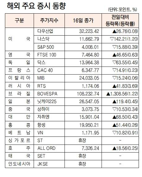 - [표]주간 해외 주요 증시 동향(5월 9일~13일)