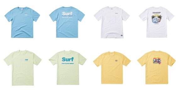 '오리지널 서프 그래픽 티셔츠'는 등 부위에 빅 레터링 포인트가 있는 제품이다. 코튼 폴리 원단을 적용했다. 래쉬가드에 사용되는 소재를 사용해 서핑이나 물놀이 등에서도 입기 좋은 '오리지널 서프 그래픽 워터 티셔츠'도 있다. '오리지널 선라이즈 그래픽 티셔츠'는 석양을 형상화한 빅 그래픽이 포인트다. 옥수수 추출 원사 소로나와 스트레치 원사를 적용해 흡습속건 기능을 갖췄다. 레귤러핏의 '오리지널 웨이브 그래픽 티셔츠'는 쿨맥스 소재를 적용했다.