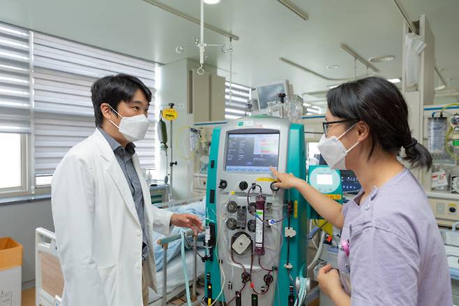 [이데일리 이순용 기자] 신장 손상으로 신장 기능이 떨어진 환자의 생존을 위해 신장을 대체하는 ‘투석’ 치료는 필수다. 특히 ‘급성신손상(Acute Kidney Injury; AKI)’은 중환자실에 입원한 중환자에게서 흔히 발생하는데 심한 경우 투석치료의 하나로 시행되는 ‘지속적 신대체요법(CRRT; Continuous Renal Replacement Therapy; CRRT)’ 치료가 필요하다.