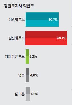 강원도지사 적합도 "김진태 48.1%, 이광재 40.1%"