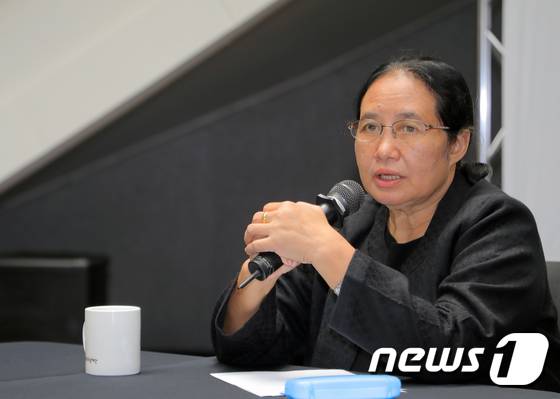(광주=뉴스1) 이수민 기자 = 태국 미얀마 국경 매타오 병원의 설립자이자 의사인 신시아 마웅(63) 박사가 17일 오전 광주 서구 5·18기념재단에서 열린 2022 광주인권상 시상식에서 수상 소감을 밝히고 있다. 2022.5.17/뉴스1