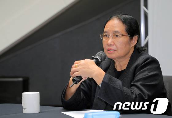 (광주=뉴스1) 이수민 기자 = 태국 미얀마 국경 매타오 병원의 설립자이자 의사인 신시아 마웅(63) 박사가 17일 오전 광주 서구 5·18기념재단에서 열린 2022 광주인권상 시상식에서 수상 소감을 밝히고 있다. 2022.5.17/뉴스1