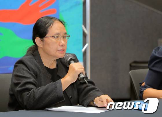 (광주=뉴스1) 이수민 기자 = 태국 미얀마 국경 매타오 병원의 설립자이자 의사인 신시아 마웅(63) 박사가 17일 오전 광주 서구 5·18기념재단에서 열린 2022 광주인권상 시상식에서 수상 소감을 밝히고 있다. 2022.5.17/뉴스1
