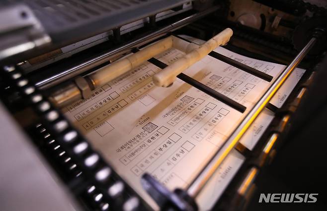 [제주=뉴시스] 우장호 기자 = 6·1 제8회 전국동시지방선거를 보름 앞둔 17일 오전 제주 시내 한 인쇄소에서 국회의원보궐선거투표 용지 등 인쇄작업이 한창 진행되고 있다. 2022.05.16. woo1223@newsis.com