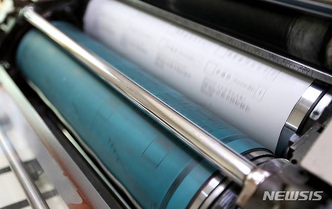 [제주=뉴시스] 우장호 기자 = 6·1 제8회 전국동시지방선거를 보름 앞둔 17일 오전 제주 시내 한 인쇄소에서 국회의원보궐선거투표 용지 등 인쇄작업이 한창 진행되고 있다. 2022.05.16. woo1223@newsis.com