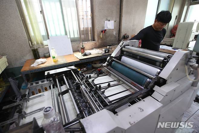 [제주=뉴시스] 우장호 기자 = 6·1 제8회 전국동시지방선거를 보름 앞둔 17일 오전 제주 시내 한 인쇄소에서 국회의원보궐선거투표 용지 등 인쇄작업이 한창 진행되고 있다. 2022.05.16. woo1223@newsis.com