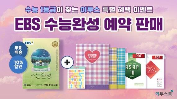 한편 2023학년도 ‘EBS 수능완성’ 사전예약 이벤트에 대한 자세한 내용은 이투스북 온라인서점 내 이벤트 페이지를 통해 확인이 가능하다.