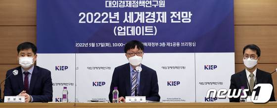 (세종=뉴스1) 김기남 기자 = 김흥종 대외경제정책연구원장이 17일 오전 정부세종청사에서 2022년 세계경제 전망을 발표하고 있다. 2022.05.17/뉴스1