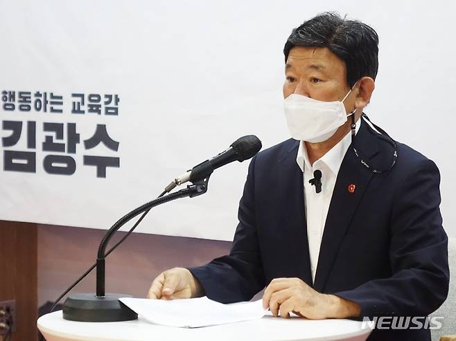 [제주=뉴시스] 양영전 기자 = 6·1 지방선거에 나서는 김광수 제주교육감 후보는 17일 다른 지역 대학에 지원하는 고3 수험생에게 항공료와 숙박비를 지원하겠다고 공약했다.