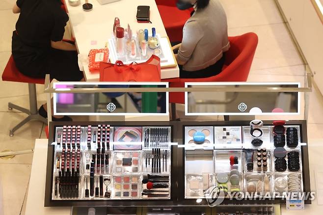 (서울=연합뉴스) 강민지 기자 = 러시아의 우크라이나 침공 사태와 인도네시아 팜유 수출 중단 사태 등으로 화장품과 비누 등 생활용품 가격이 상승 압박을 받고 있다. 주원료인 팜유와 곡물 등 원재료 가격이 급등하고 있기 때문이다. 17일 서울의 한 백화점 화장품 매장. 2022.5.17