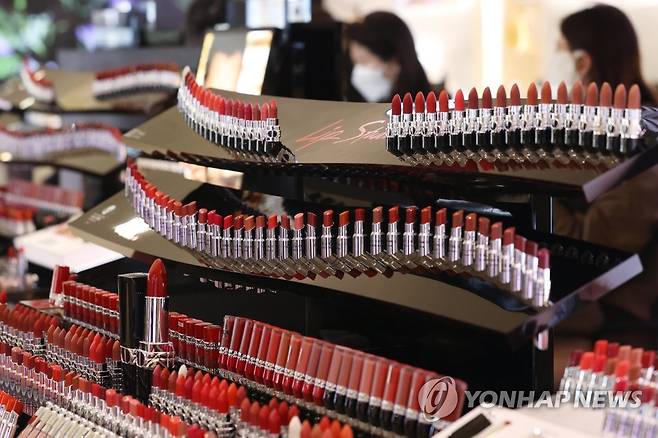 (서울=연합뉴스) 강민지 기자 = 러시아의 우크라이나 침공 사태와 인도네시아 팜유 수출 중단 사태 등으로 화장품과 비누 등 생활용품 가격이 상승 압박을 받고 있다. 주원료인 팜유와 곡물 등 원재료 가격이 급등하고 있기 때문이다. 17일 서울의 한 백화점 화장품 매장. 2022.5.17