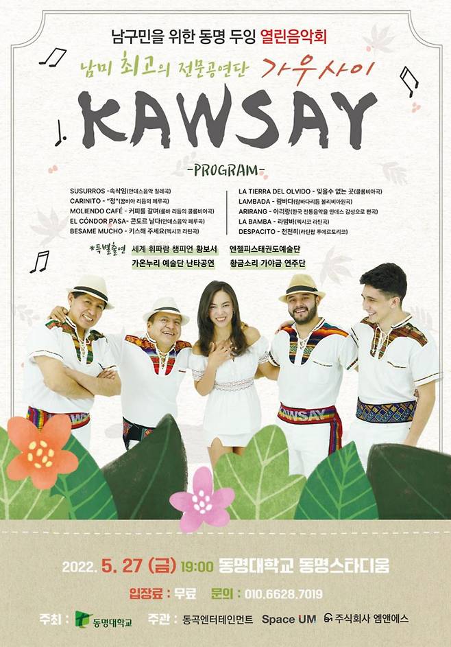 남미 음악을 전문적으로 공연하는 에콰도르 음악단체 가우사이(KAWSAY)가 부산을 찾는다.