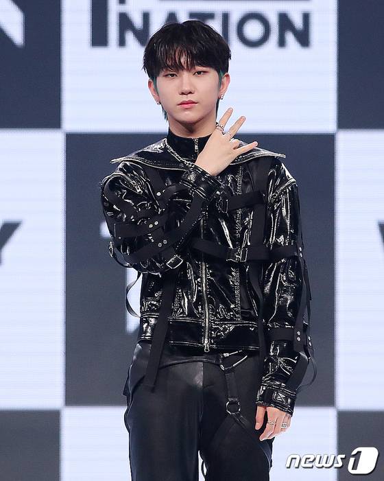 (서울=뉴스1) 김진환 기자 = 보이그룹 TNX(티엔엑스, The New Six)의 오성준이 17일 오후 서울 용산구 한남동 블루스퀘어에서 열린 첫 번째 미니앨범 ‘WAY UP’ 발매 기념 쇼케이스에서 포토타임을 갖고 있다. 2022.5.17/뉴스1