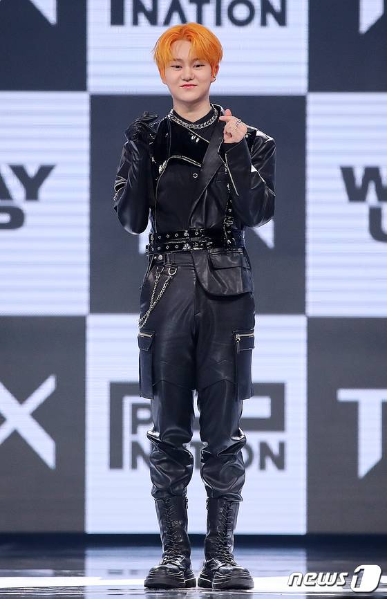 (서울=뉴스1) 김진환 기자 = 보이그룹 TNX(티엔엑스, The New Six)의 장현수가 17일 오후 서울 용산구 한남동 블루스퀘어에서 열린 첫 번째 미니앨범 ‘WAY UP’ 발매 기념 쇼케이스에서 포토타임을 갖고 있다. 2022.5.17/뉴스1