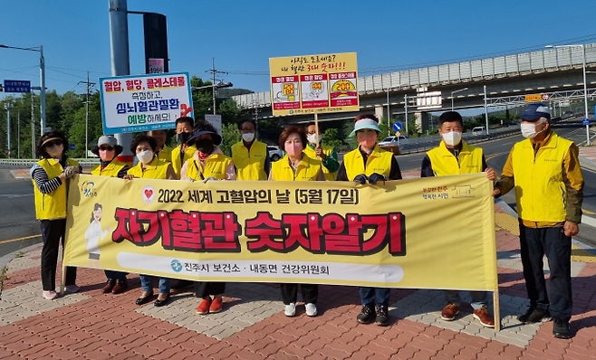 경남 진주보건소가 17일 '세계 고혈압의 날'을 맞아 올바른 생활습관 실천과 혈압, 혈당, 콜레스테롤 수치 알기를 통해 심뇌혈관질환 예방과 관리에 대한 관심을 유도하기 위해 캠페인 및 건강체험관을 운영했다.