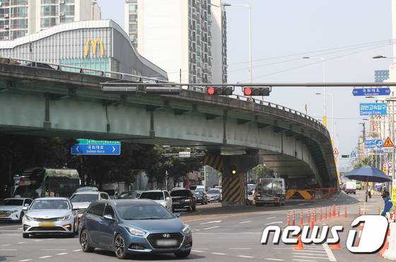 (서울=뉴스1) 송원영 기자 = 17일 오후 서울 영등포구에 위치한 철거를 앞둔 선유고가차도 모습. 서울시는 선유고가차도 여의도방면 철거를 18일 완료하고, 선유고가차도 양화대교방면 철거를 위해 오는 19일 0시부터 선유고가차도를 전면 통제한다고 17일 밝혔다. 선유고가차도의 모든 철거공사는 11월 완료된다. 선유고가차도 여의도방면(목동→여의도)은 지난해 12월 철거에 들어가 약 6개월 만에 완료돼 평면교차로가 19일 개통된다. 선유고가차도는 여의도와 마포 등 강북 방면 도심지 교통난 해소를 위해 지난 1991년 국회대로와 선유로가 만나는 경인고속도로 입구 교차로에 설치됐다. 그러나 고가차도가 양평동 3가와 당산동 3‧4가를 가로막아 지역 간 단절을 초래하고 주변 도시미관을 저해해 영등포 일대 주민들이 지속해서 철거를 요구해왔다. 2022.5.17/뉴스1