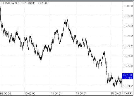 17일 서울외국환중개에 따르면 원·달러 환율은 전 거래일 종가(1284.10원)보다 9.10원 내린 1275원에 마감했다. 사흘 연속 하락 마감으로 환율이 1270원대에서 마감한 것은 지난 11일(1275.30원) 이후 5거래일 만이다. 하락폭은 지난 29일 16.60원 내린 이후 가장 컸다.