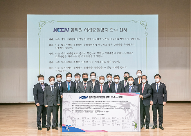 한국남동발전(사장 김회천)이 오는 19일부터 시행되는 이해충돌방지법에 발맞춰 전 임직원을 대상으로 한 이해충돌방지법 준수 서약 행사를 개최했다.