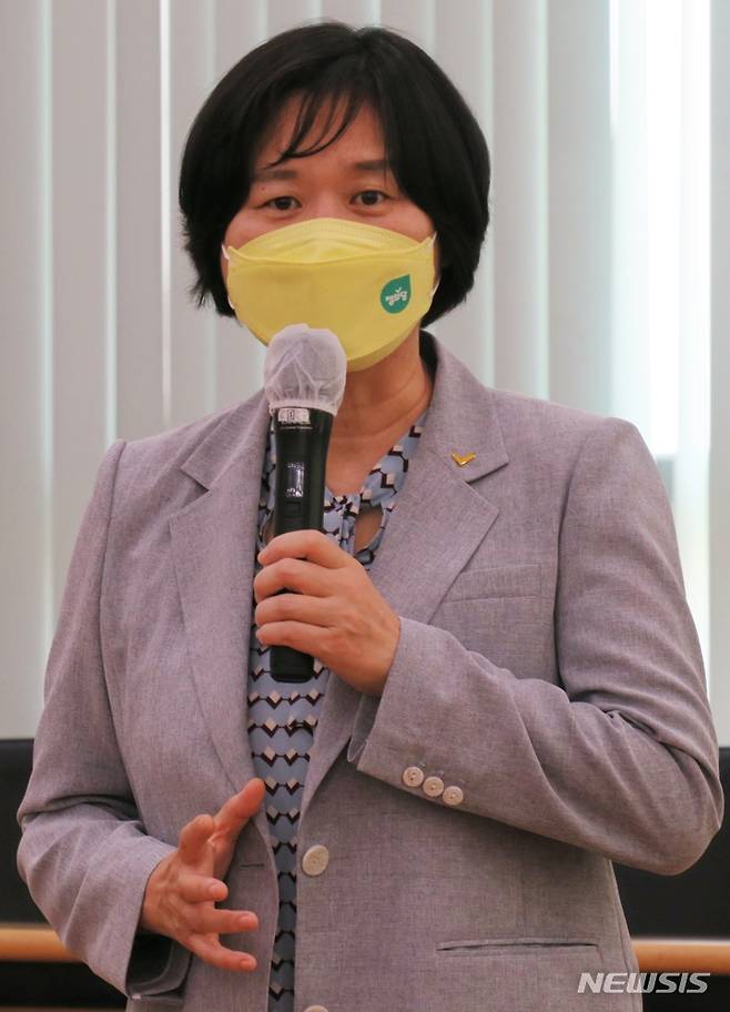 [인천=뉴시스] 김동영 기자 = 17일 오후 인천 남동구 구월동 인천YWCA 대강당에서 열린 인천공공의료포럼 인천시장 후보자 초청 보건의료정책 토론회에 참석한 정의당 이정미 후보가 발언을 하고 있다. 2022.05.17. dy0121@newsis.com