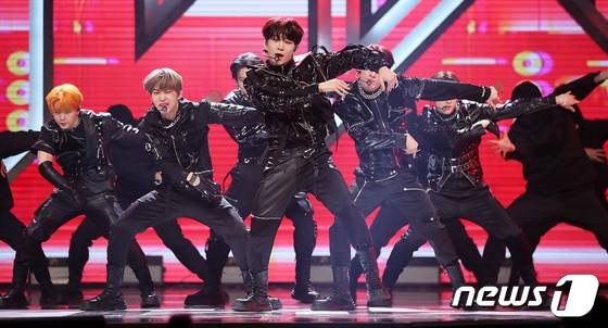 (서울=뉴스1) 김진환 기자 = 보이그룹 TNX(티엔엑스, The New Six)가 17일 오후 서울 용산구 한남동 블루스퀘어에서 열린 첫 번째 미니앨범 ‘WAY UP’ 발매 기념 쇼케이스에서 열정적인 무대를 펼치고 있다. 2022.5.17/뉴스1