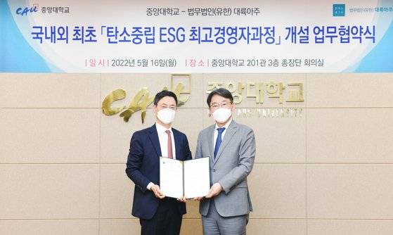 중앙대는 이날 체결한 업무협약에 따라 대륙아주와 협력해 탄소중립 ESG 최고경영자과정을 개설한다. 탄소중립과 ESG를 융합한 최고경영자과정이 만들어지는 것은 국내외를 통틀어 이번이 처음이다.