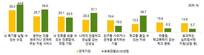 교통비 지원, 건강검진 제공, 진학정보 제공, 검정고시 준비 지원, 진로탐색 체험 등 전반적으로 일상생활과 밀접한 요구가 반영되었습니다.