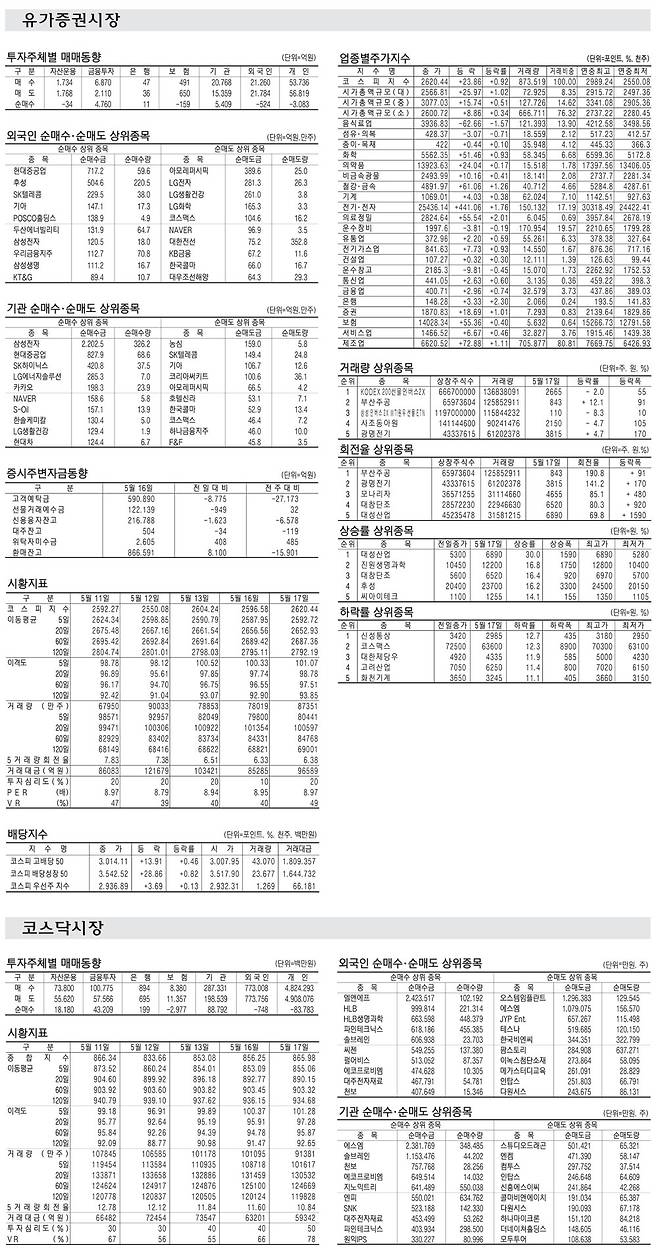 [표] 주요 증시 지표 (5월 17일)