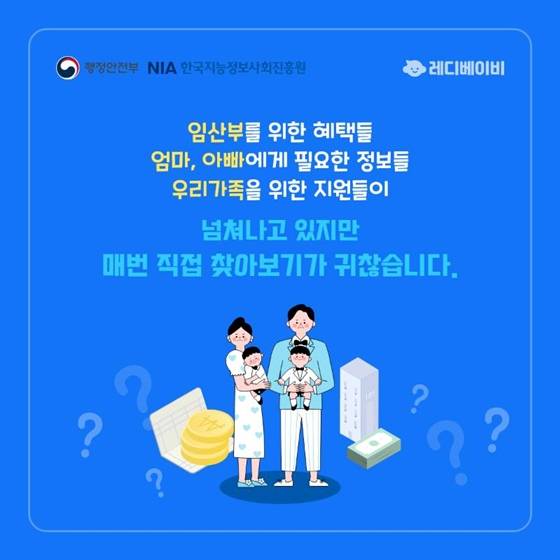 임산부를 위한 혜택들, 엄마, 아빠에게 필요한 정보들, 우리 가족을 위한 지원들이 넘쳐나고 있지만 매번 직접 찾아보기가 귀찮습니다.