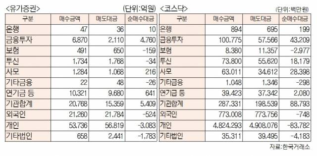 [표]유가증권·코스닥 투자주체별 매매동향(5월 17일-최종치)