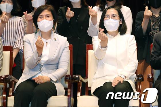 손가락 하트 만든 김현숙 신임 여가부 장관