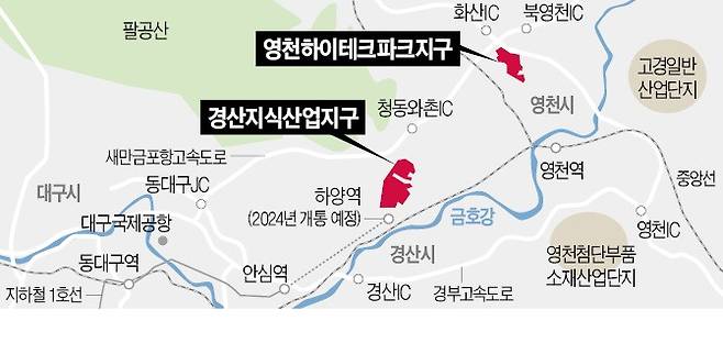 17일 대구경북경제자유구역청에 따르면 영천 하이테크파크지구는 오는 9월, 경산지식산업지구 2단계는 11월께 산업용지 분양에 들어간다.