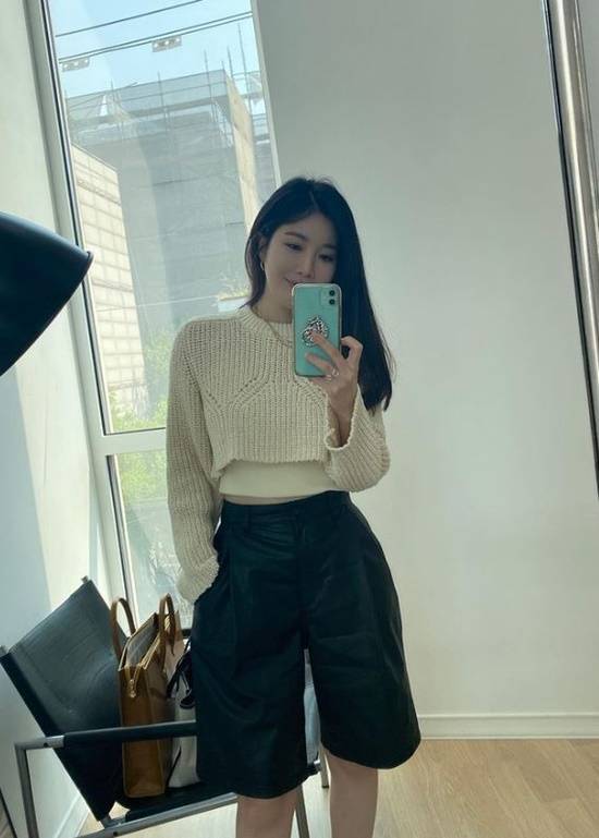 또 다른 사진 속 그는 아이보리색 니트와 검정색 반바지를 조합해 남다른 패션 감각을 뽐냈다. 은은한 미소를 지은 이해리의 표정에서 예비 신부의 행복함이 엿보인다.