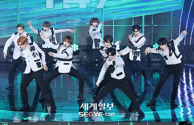 그룹 T1419가 17일 오후 서울 마포구 상암동 SBS 프리즘타워에서 열린 ‘더쇼’의 현장공개에 참석해 열띤 공연을 펼치고 있다.
