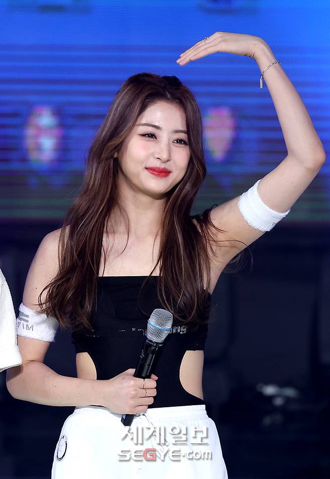 걸그룹 르세라핌 허윤진이 17일 오후 서울 마포구 상암동 SBS 프리즘타워에서 열린 ‘더쇼’의 현장공개에 참석해 열띤 공연을 펼치고 있다.