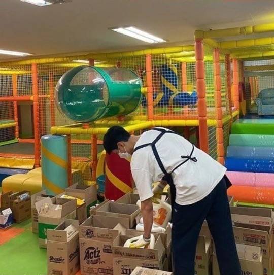사진에는 박보검의 모습이 담겼다. 그는 마스크와 앞치마를 입고 있었다. 어린이날을 맞아 보육원에서 봉사활동을 했다. 굵은 땀을 흘리며 후원 물품들을 정리했다.