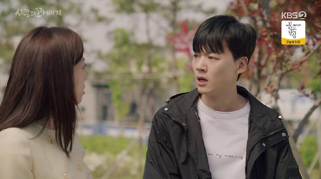 17일 방송된 KBS 2TV 일일드라마 '사랑의 꽈배기'에서 오소리(함은정 분)은 조경준(장세현)과 만나 대화를 나누는 장면이 그려졌다.