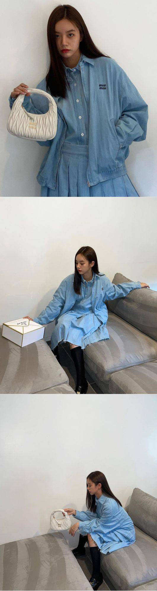 공개된 사진은 M사 옷과 가방을 들고 있는 혜리의 모습.