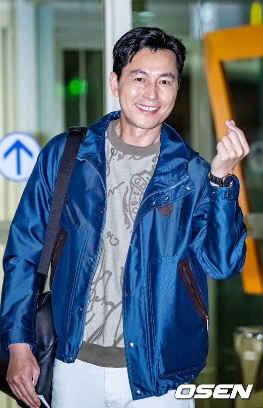배우 정우성이 출국장을 향해 걸어가며 포즈를 취하고 있다. 2022.05.17 /rumi@osen.co.kr