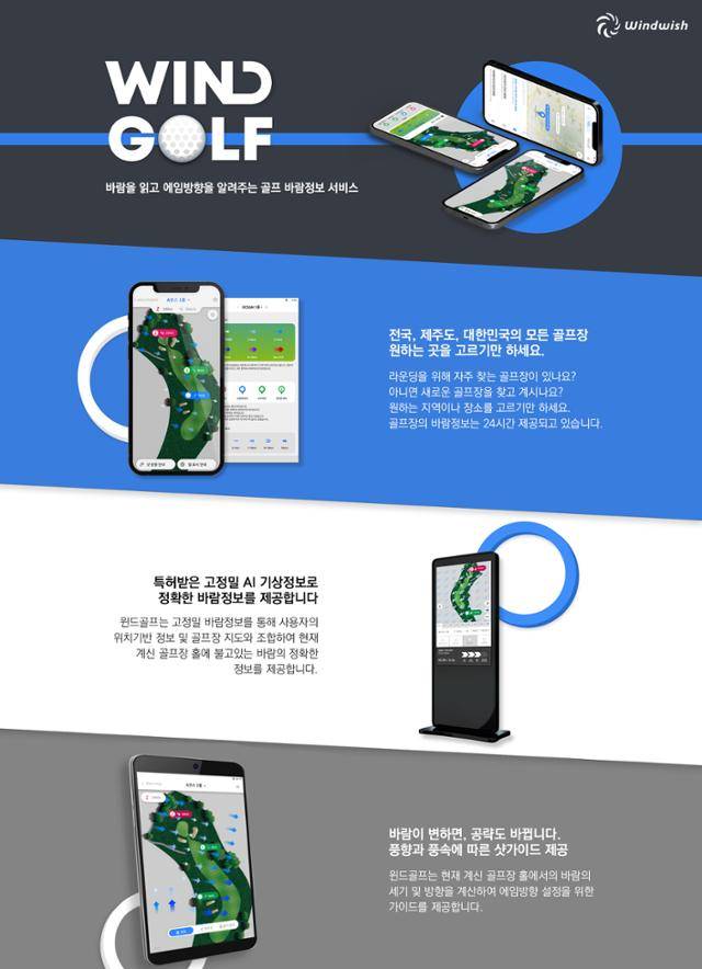 윈드위시는 지난 3년간 골프장 현장 실험을 통한 30m 격자의 고해상도 AI기상모델을 개발했다. 올해에는 지형효과 반영, 3차원 시각화, 실시간 서비스 등의 기존 문제들을 반영한 Wind-Golf 서비스를 재출시할 예정이다.