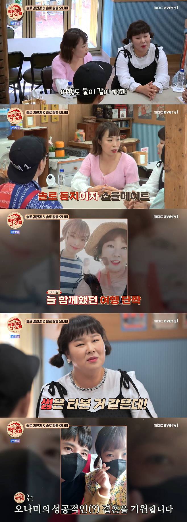 김민경과 오나미는 KBS 개그맨 동기라며 "개그맨 되고 나서 둘 다 10년 넘게 솔로여서 소울메이트였다. 해외여행도 둘이 같이 다니곤 했다"라고 말했다.