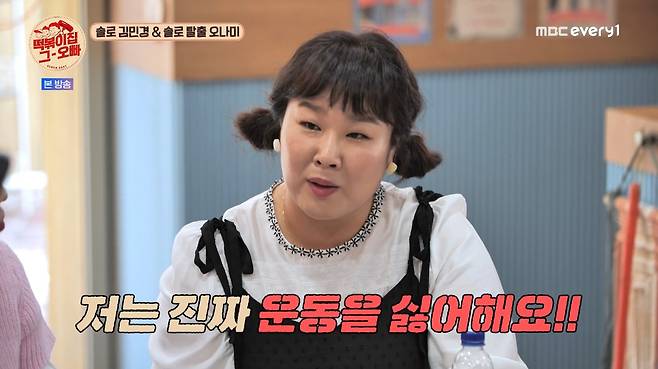 김민경은 '운동뚱' 채널을 통해 '민경장군'으로 큰 사랑을 받았다. 문세윤도 인정한 '근수저' 타고난 신체 능력의 소유자인 그는 "저는 진짜 운동을 싫어한다. 40년 평생 운동 안하고도 건강하고 행복하게 살았는데 왜 굳이 땀흘리며 살아야 하나 싶었다"면서 당시 테이블에 붙은 아령을 들은 것도 "운동이 너무 하기 싫었기 때문"이라고 말했다.