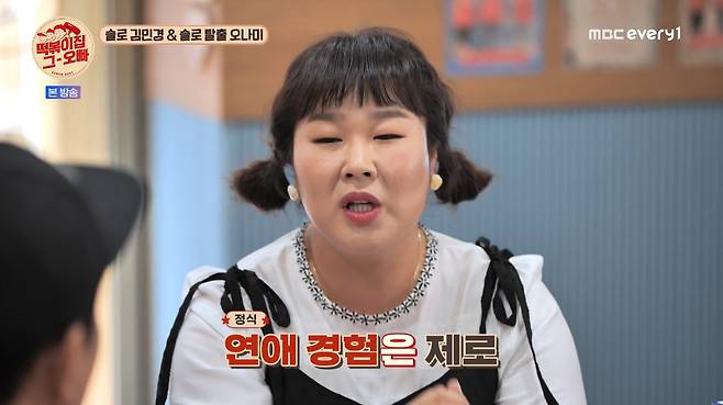 개그우먼이 된 후로도 10년 넘게 솔로였다고 밝힌 두 사람. 특히 '모태솔로'라는 김민경은 "썸은 타본 거 같은데 사귄 경험은 없다"며 "연애도 타이밍이 있는 것 같다"고 말했다. 오나미는 그런 김민경에게 "언니가 만남을 조심스러워한다"고 이야기했다.