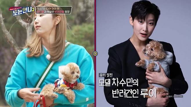 반려견을 키우지 않는다는 한유미는 "얘는 조카다"라며 모델 차수민의 반려견을 소개했다.