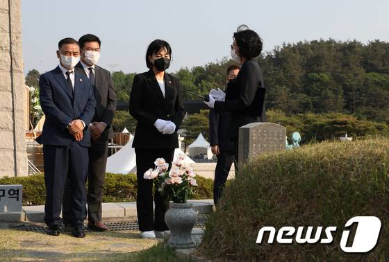 (서울=뉴스1) 민경석 기자 = 전현희 국민권익위원장이 17일 광주 북구 국립5·18민주묘지를 방문해 5월 민주영령 묘역을 둘러보고 있다.(국민권익위원회 제공) 2022.5.17/뉴스1