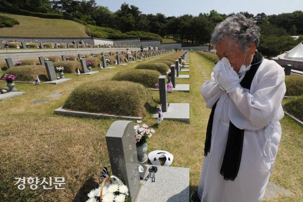 아들 묘소 앞에서 오열하는 어머니[경향포토]