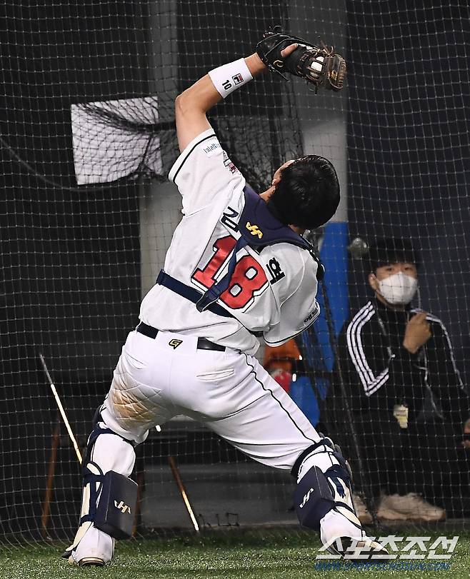2022 KBO리그 두산 베어스와 SSG 랜더스의 경기가 17일 잠실구장에서 열렸다. 11회초 2사 SSG 김민식의 타구를 두산 포수 김민혁이 처리하고 있다. 잠실=박재만 기자 pjm@sportschosun.com/2022.05.17/